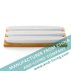 3-PC SERVING DISH W/ BAMBOO TRAY