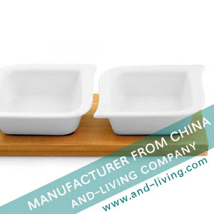 SET OF 3 PORCELAIN BOWL WITH BAMBOO TRAY